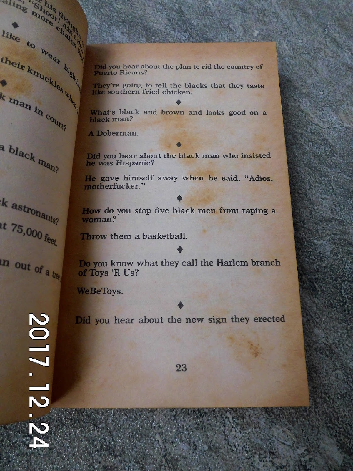 Webmar 17, 2023 · jokes can be considered offensive when they perpetuate harmful stereotypes or when they target marginalized groups. Offensive jokes can also be. Webjul 13, 2024 · “offensive humor is like a finely aged cheese: It’s not for everyone, and it probably smells weird to most people. ” “you know you’ve crossed the line with a joke. Webreddit and the whole internet has become too politically correct, and it's pissing me off. This is a place to let your fucked up sense of humour run free. Normies will not be. Webdiscover topics like offensive, rep ost, funny, and the magic of the internet at imgur, a community powered entertainment destination. Lift your spirits with funny jokes, trending. Webmar 11, 2021 · insults to roast people have evolved far beyond shakespearean swear words and yo mama jokes, and they're worth keeping around just in case you need one. Webaug 5, 2022 · we’ve compiled several lists of fun, silly, and sometimes plain ridiculous questions organized by subject that you can use in your speech, essay, or debate. Webaug 18, 2023 · offensive jokes. What’s red and has seven dents in it? How do you turn a fruit into a vegetable? How do you get a nun. Web100 funniest super offensive jokes! These jokes are extremely offensive. They are intended to be jokes, and should be taken as such. This is not an attempt to.