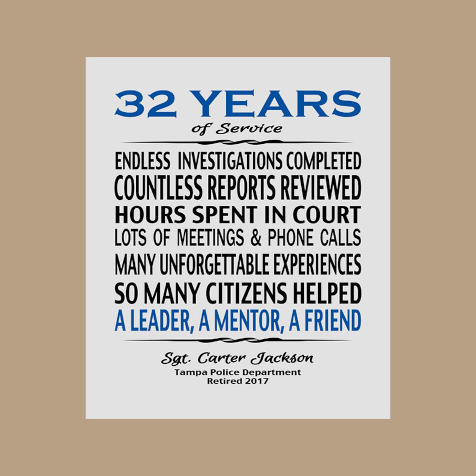 Police Officer RetirementPlaque Wording